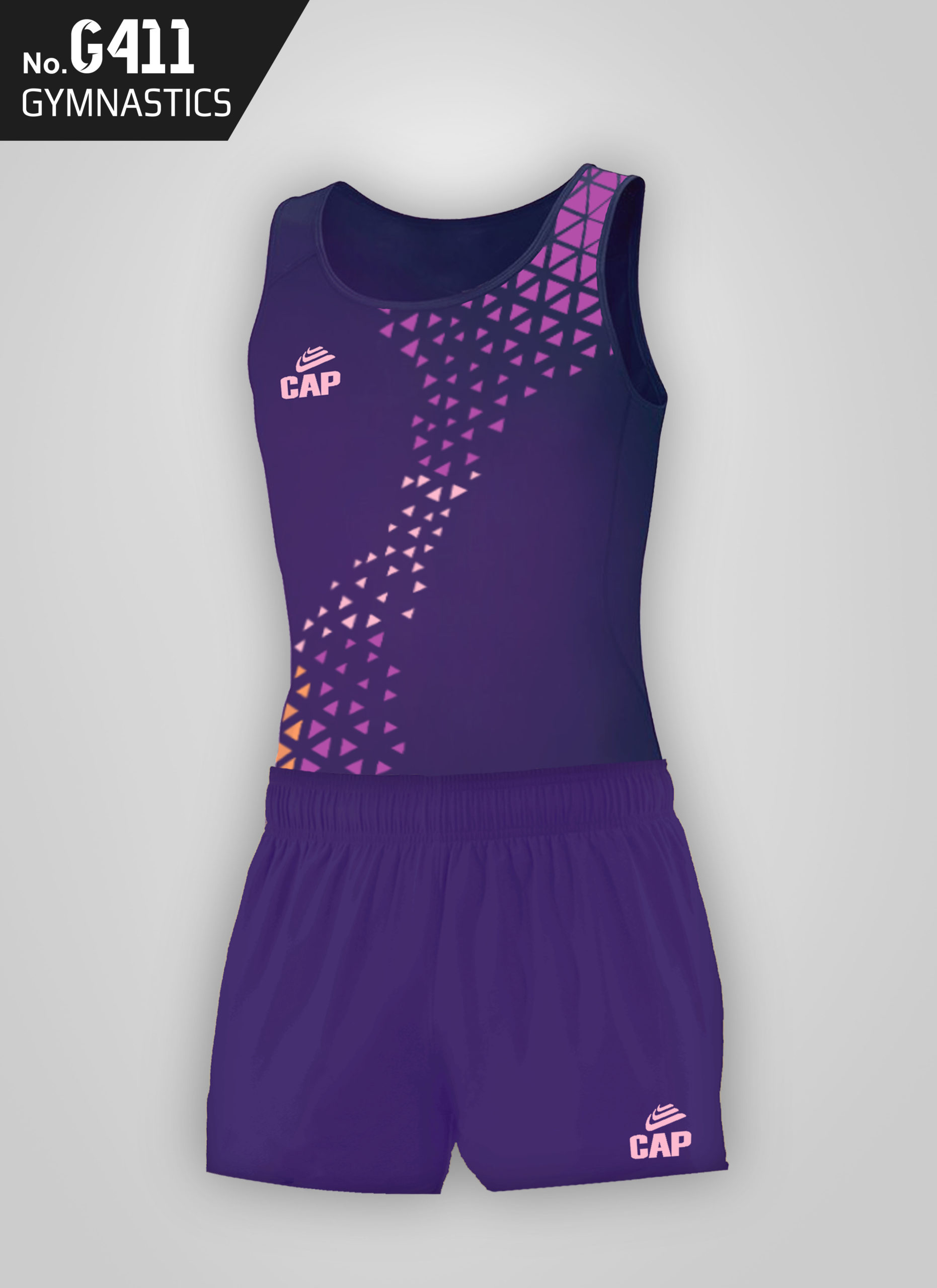 Men's purple geo leotard & shorts, from the collection of the Hellenic Gymnastics Federation.