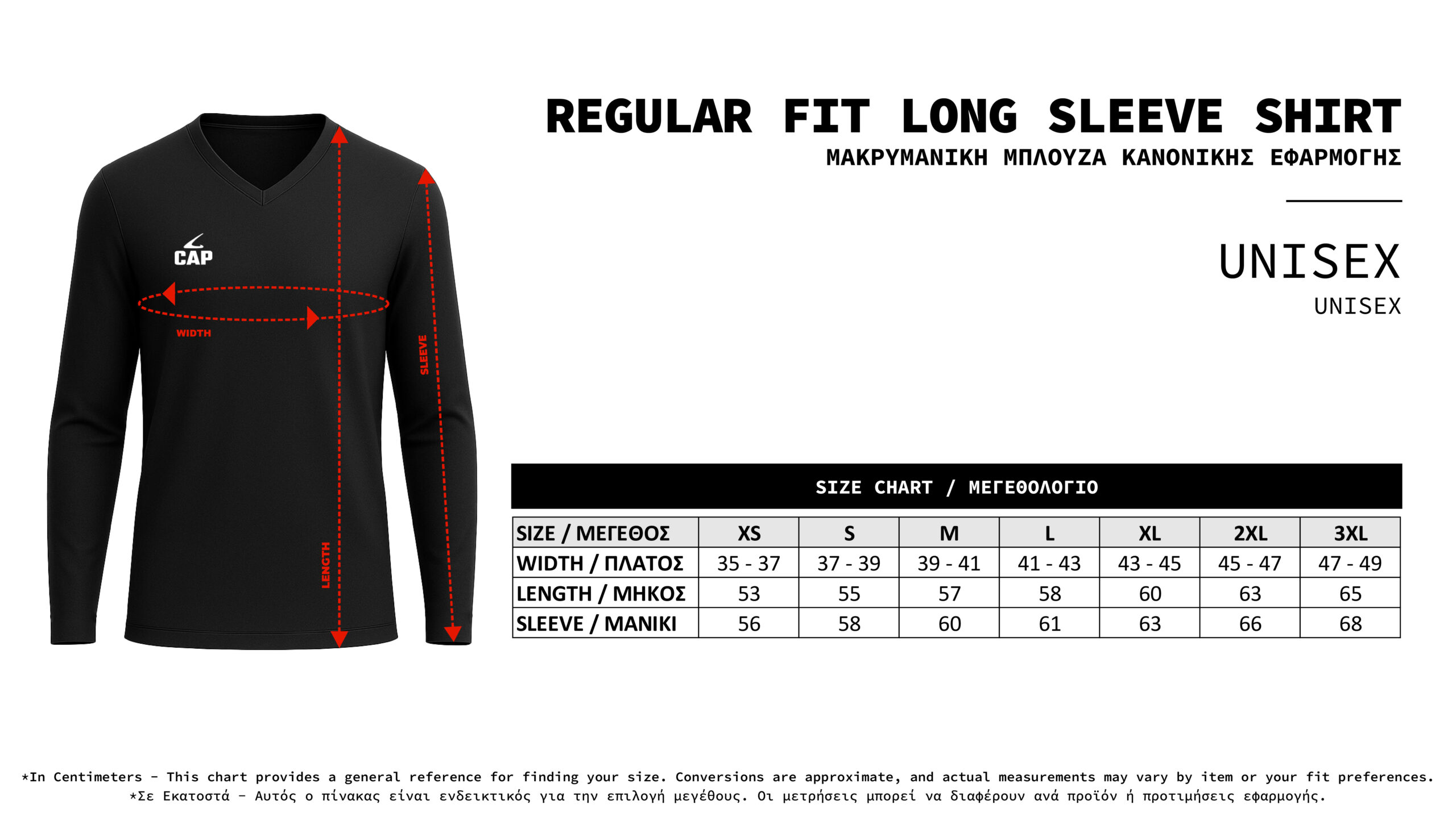 REGULAR FIT LONG SLEEVE SHIRT - SIZE CHART